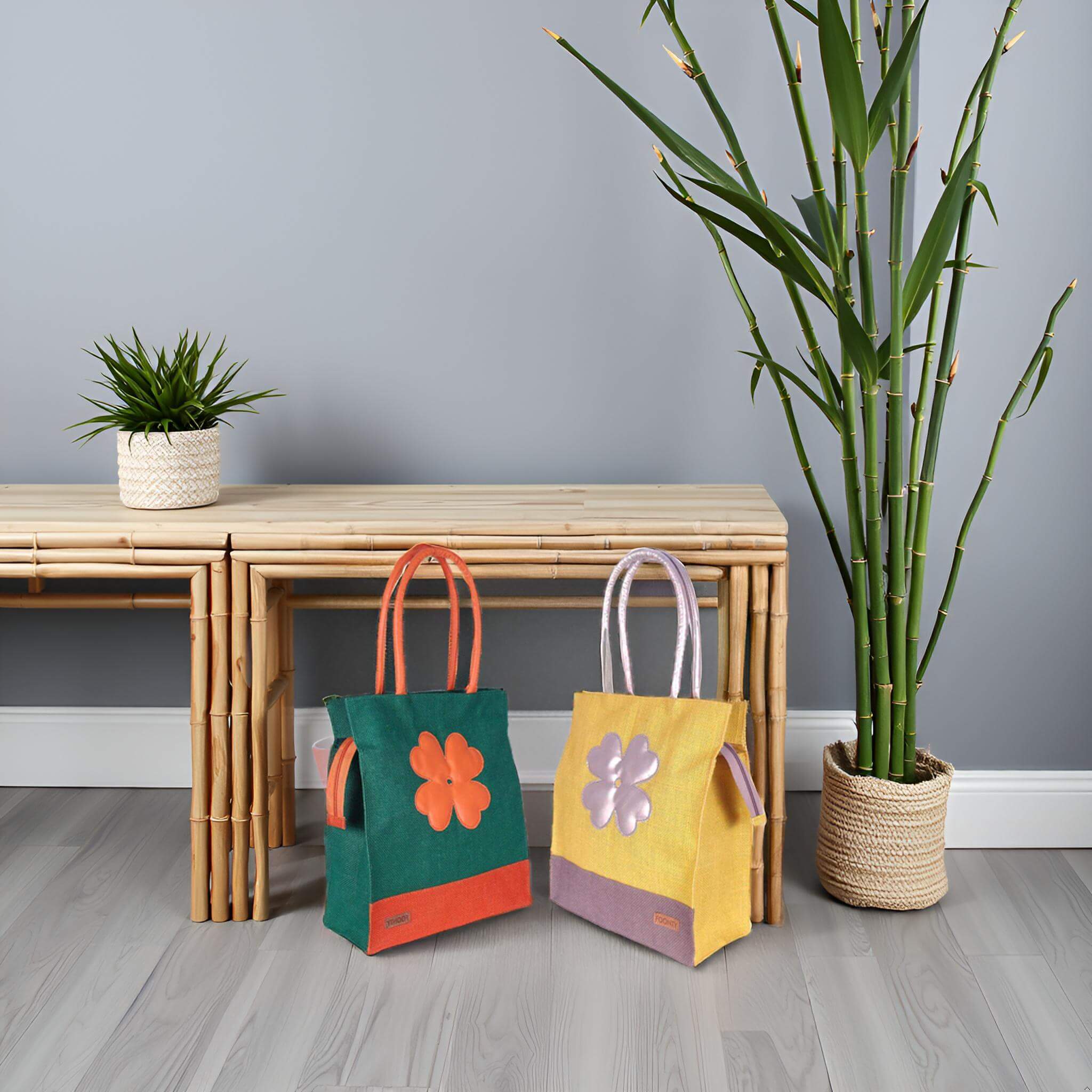 Foonty Flower Pattern Jute Lunch Bag(Pack of 2)